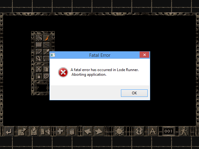 Getting Lode Runner Online: The Mad Monks' Revenge to run on Windows 7, 8, and 10 32bit machines is simple: just download the original copy from the lead programmer Todd Daggert's site and away you go. If you don't have Windows 10, loading and saving puzzles and games usually results in the game crashing. There is no fix for this.
